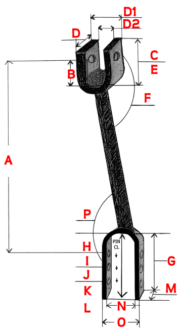 P: Degrees of bottom clevis to the side link shaft. A straight clevis would have the clevis pin 90° to the side link shaft. How